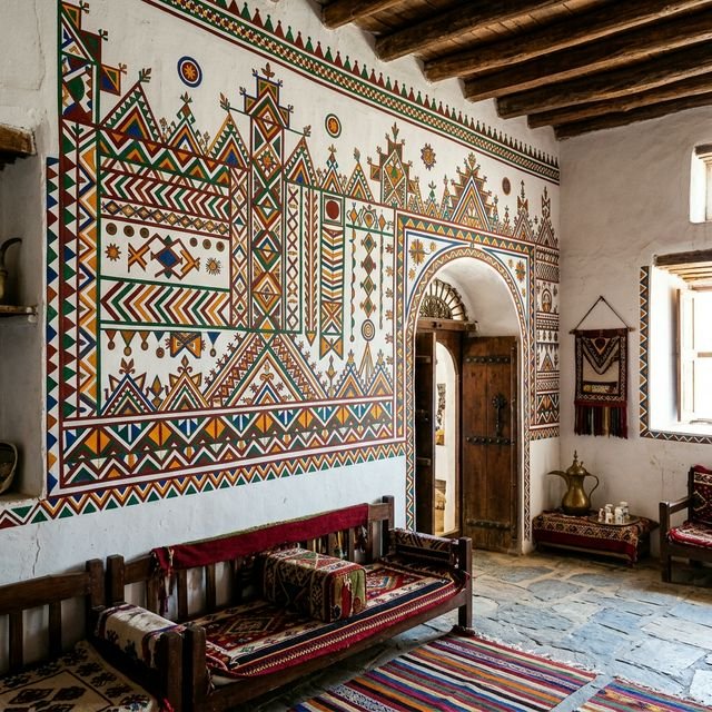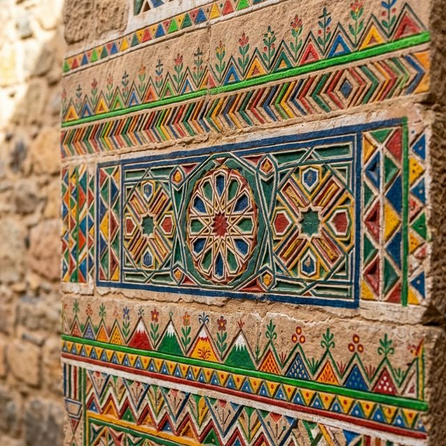 نستكشف الرموز والدلالات خلف الأنماط الزخرفية التي تزيّن جدران المنازل القديمة، والألوان الطبيعية المستخلصة من البيئة المحلية.