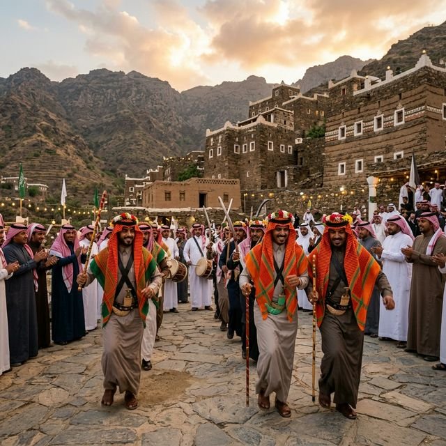 تعرّف على العرضة الجنوبية، الفن الأدائي العريق الذي يُعبّر عن الشجاعة والفخر، وكيف تتوارثه أجيال رجال ألمع في مناسباتها الكبرى.